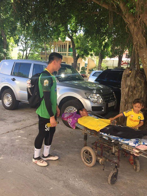 Bùi Tiến Dũng đã có những cử chỉ đầy thân thiện bên cạnh Bá kỳ. Ngoài ra, thủ môn CLB FLC Thanh Hóa cũng không quên dành tặng cho anh Bá Kỳ những lời động viên, thăm hỏi chân thành.