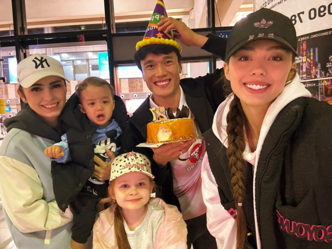"Anh đã luôn và mãi là thủ môn tốt nhất trong lòng em. Hãy kiên trì, theo đuổi mục tiêu của anh và đừng bao giờ bỏ cuộc. Em tin tưởng anh, ủng hộ anh và luôn ở bên anh. Chúc mừng sinh nhật người chồng và người cha vĩ đại nhất mà em luôn ao ước. Em yêu anh rất nhiều", bà xã Bùi Tiến Dũng nhắn nhủ đầy cảm xúc.