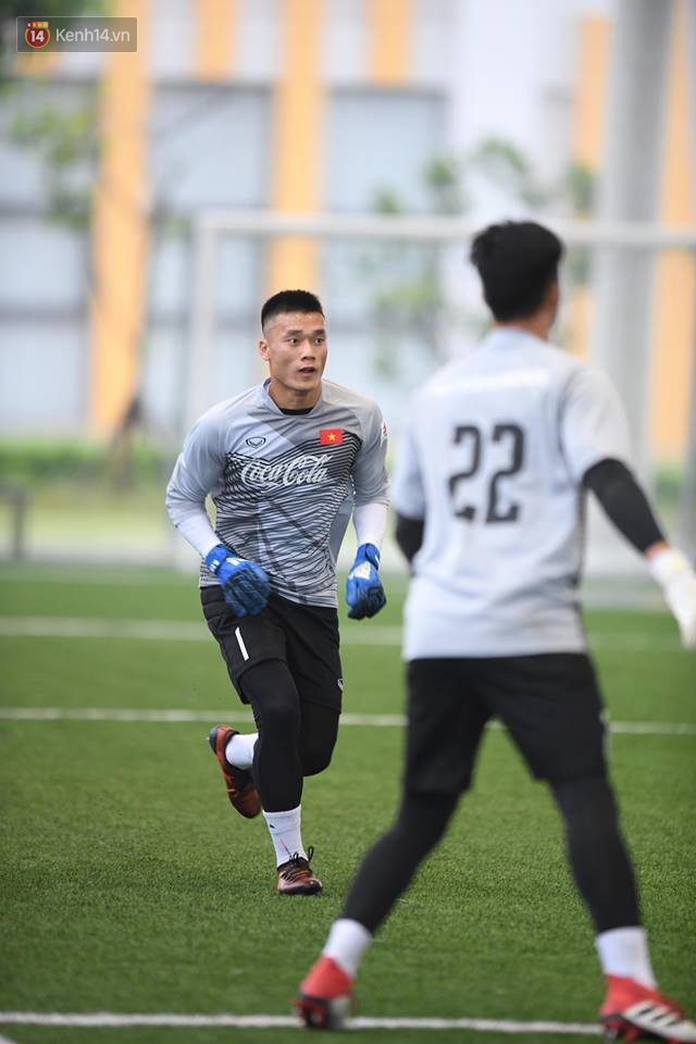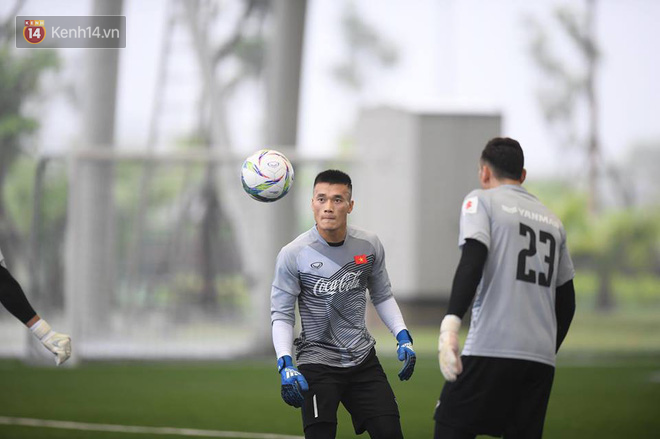 Trong buổi tập đầu tiên, trợ lý thủ môn Nguyễn Đức Cảnh yêu cầu 3 cậu học trò thực hiện các bài chống bóng bổng. Bùi Tiến Dũng hoàn thành khá tốt nhiệm vụ.
