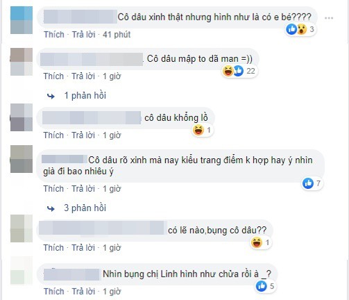 Ngay sau khi những bức ảnh đám hỏi của Bùi Tiến Dũng và bạn gái được đăng tải lên MXH, dân tình đã không khỏi bàn tán xôn xao. Nhiều người hết lời chúc phúc cho hạnh phúc của cặp đôi trẻ, nhưng cũng có không ít ý kiến cho rằng Khánh Linh đang có tin vui.