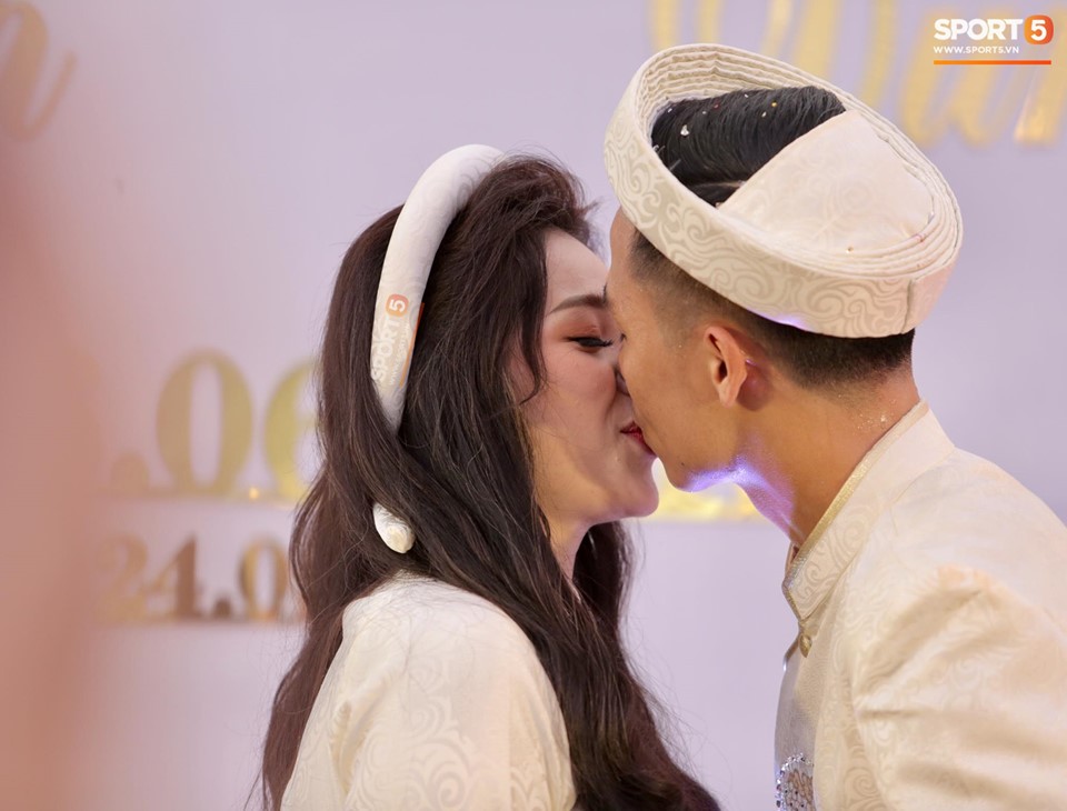 Bùi Tiến Dũng trao nụ hôn nồng cháy cho bạn gái tại lễ ăn hỏi