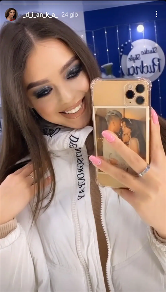Trên trang cá nhân, Dianka chia sẻ khá nhiều về hành trình trở lại Việt Nam của mình. Cô nàng mẫu Tây này còn đăng tấm hình tự sướng, để lộ đằng sau tấm ốp lưng điện thoại là ảnh chụp với Bùi Tiến Dũng cực tình cảm.