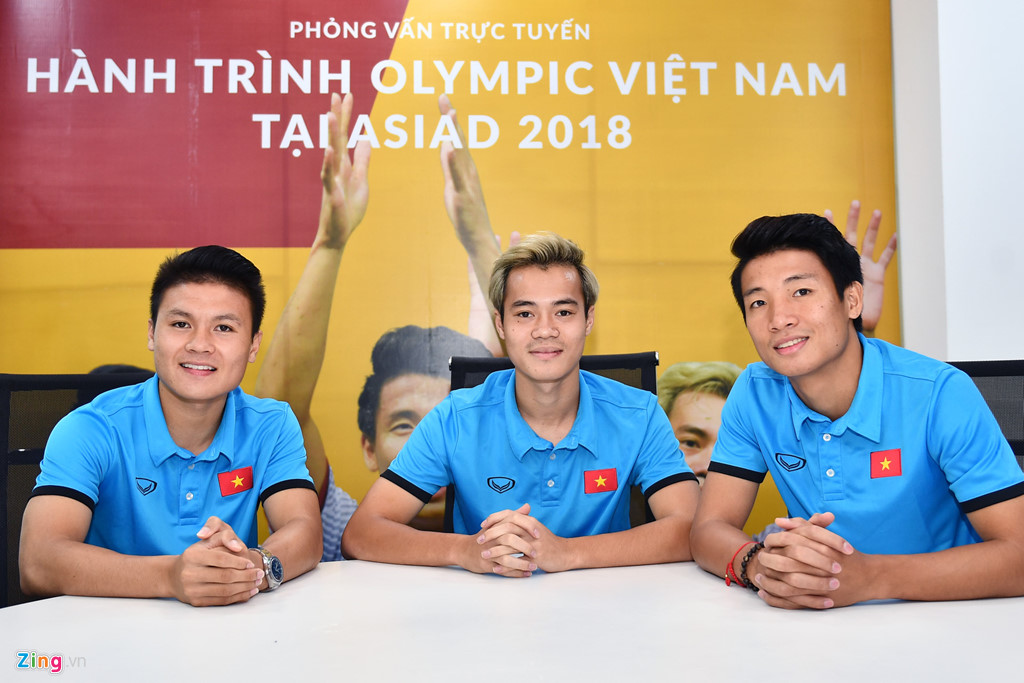 Trở về từ ASIAD 2018, Văn Toàn, Quang Hải, Tiến Dũng tới tham dự buổi giao lưu trực tuyến với độc giả tại tòa soạn Zing.vn sáng 3/9.