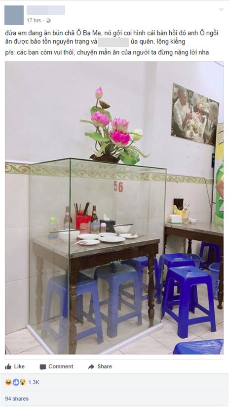 Chủ nhân của bức ảnh trên là Đàm Hà Phú - một nhà văn nổi tiếng, viết: "Đứa em đang ăn bún chả Obama, nó gửi coi hình cái bàn hồi đó ông Obama ngồi ăn được bảo tồn nguyên trạng và lồng kính".