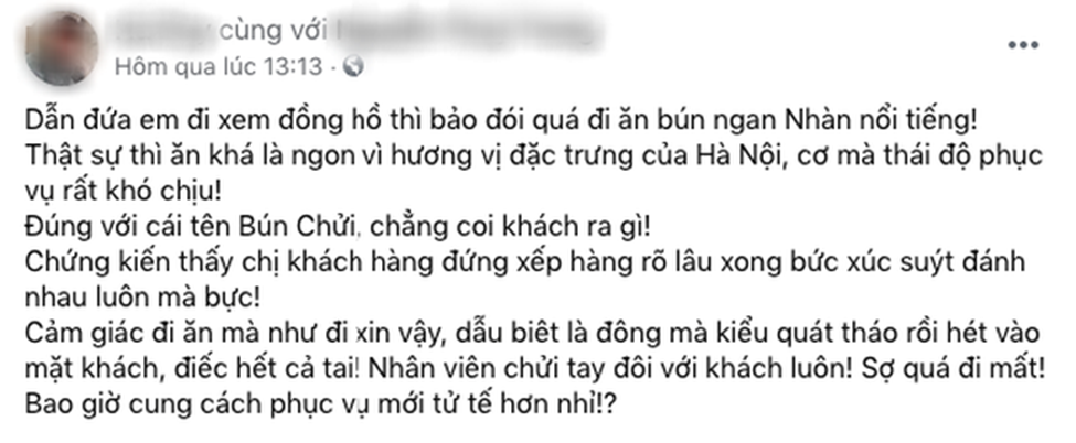 Khách hàng nổi đoá khi bị nhân viên bún ngan Nhàn chửi bới và thái độ lặng thinh của chủ quán.