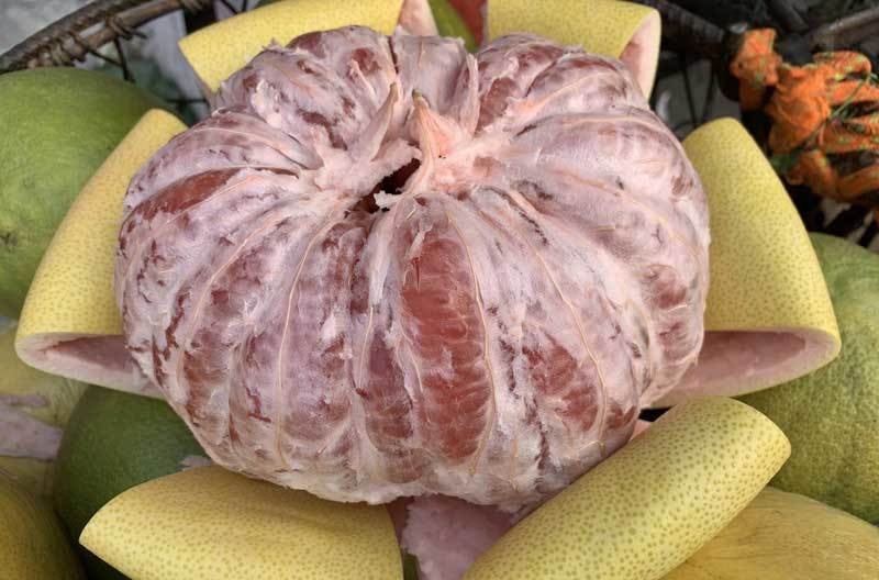 ...và tép đỏ, nhưng ăn đều hơi chua, thậm chí có vị ngăm đắng, không thơm như bưởi Việt Nam
