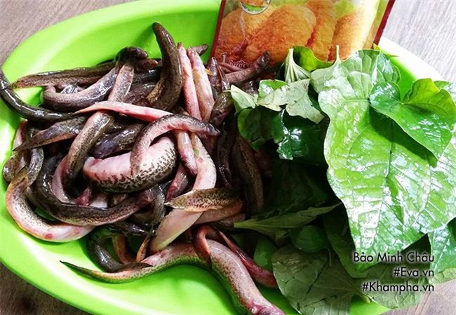 Bước 5: Lá lốt rửa sạch, 1 nửa thái nhỏ 1 nửa để ráo nước lát ăn kèm với chạch chiên.