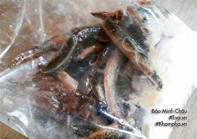Buộc chặt miệng túi, xóc đều cho bột bám vào từng con chạch. Sau đó cho ra đĩa.