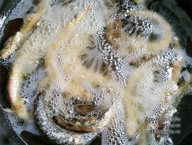 Khi cá vàng đều hai mặt thì vớt ra giấy thấm dầu.