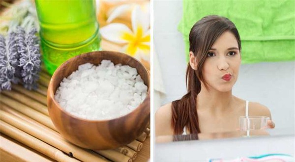 Khi đau răng hay lở miệng, bạn có thể hòa nước muối vào nước ấm, sau đó dùng để súc miệng. Hỗn hợp này sẽ là loại nước súc miệng tuyệt vời và còn có tác dụng nhuận tràng nữa.