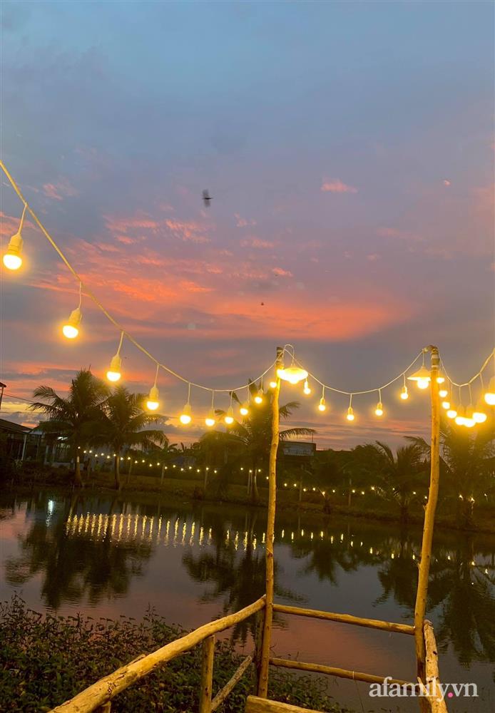 Khu vực ao cá được chị Như thiết kế cây câu, đây là nơi yêu thích của mọi người trong gia đình. Mỗi chiều có thể ngồi ngắm cảnh hoàng hôn thật chill hoặc thảnh thơi câu cá. Trong ao được chị thả khá nhiều loại như cá lóc, cá rô phi, cá trê…