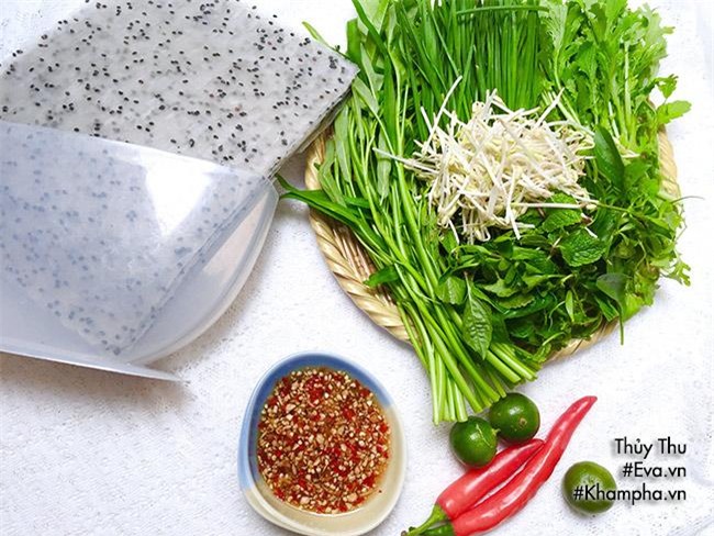 Bước 2: Nấm mèo ngâm nở, rửa sạch, cắt sợi nhuyễn. Hành tím băm nhuyễn. Miến ngâm mềm cắt khúc. Rau thơm ăn kèm rửa sạch để ráo.