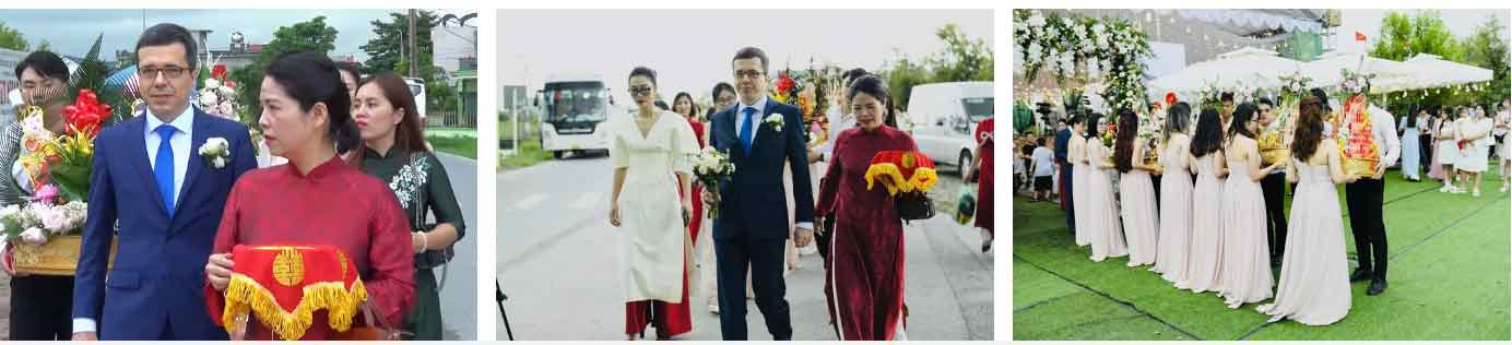 Trong giờ phút hạnh phúc nhất, trước quan viên hai họ, chú rể Loic phát biểu: "Lời đầu tiên cho phép Loic và Tuệ Lâm gửi lời chào và lời cảm ơn chân thành nhất đến các quý vị ở đây. Tuệ Lâm có nói con người Ninh Giang (Hải Dương) rất thân thiện và ấm áp. Hôm nay tôi đã thấy điều đó. Tôi rất biết ơn gia đình Tuệ Lâm, đặc biệt là mẹ cô ấy đã chào đón tôi đến với gia đình và mảnh đất Ninh Giang này. Chúng tôi rất hân hạnh được tổ chức đám cưới ở đây và cảm ơn mọi người có mặt ngày hôm nay".