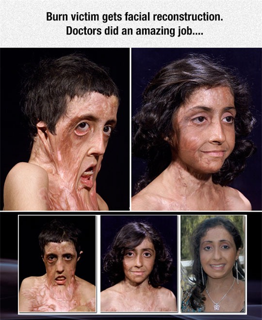 Do gặp phải tai nạn đáng tiếc, 1 cô gái người Afghanistan đã bị bỏng gần như toàn thân. Sau những nỗ lực của các bác sĩ Mỹ, cô gái trẻ đã được phẫu thuật cấy ghép mặt để trở nên xinh đẹp hơn.
