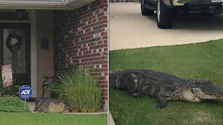 Một con cá sấu khổng lồ chui lên từ cống nước và đi lảng vảng trước nhà dân tại thị trấn La Place, bang Louisiana, Mỹ.