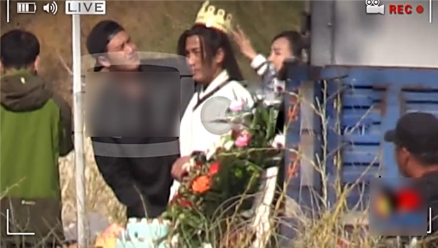 Trên phim trường, đoàn làm phim đã tổ chức sinh nhật cho Lưu Khải Uy và Vương Âu những cử chỉ thân mật của nữ diễn viên dành cho chồng Dương Mịch.