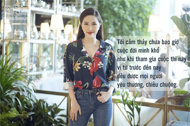 Lúc quyết định tham gia, tôi trăn trở rất nhiều vì có quá nhiều thí sinh mới là đàn em của tôi trong showbiz, còn tôi đã hoạt động 10 năm rồi. Tôi không xác định mình phải đạt quán quân hay bất cứ giải gì, chỉ nghĩ "với tôi, không có 2 từ thua cuộc".