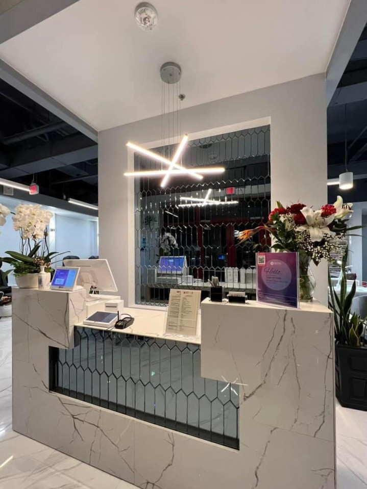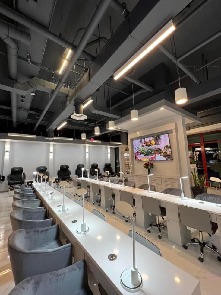Tiệm có diện tích lớn, quy mô hơn 20 ghế làm móng chân, 16 ghế làm móng tay và 2 phòng nối mi. Nhân viên hơn 10 người, chủ yếu là người Việt, có tay nghề cao, làm việc theo ca với mức lương 3-9 nghìn USD/tháng (78-235 triệu đồng).