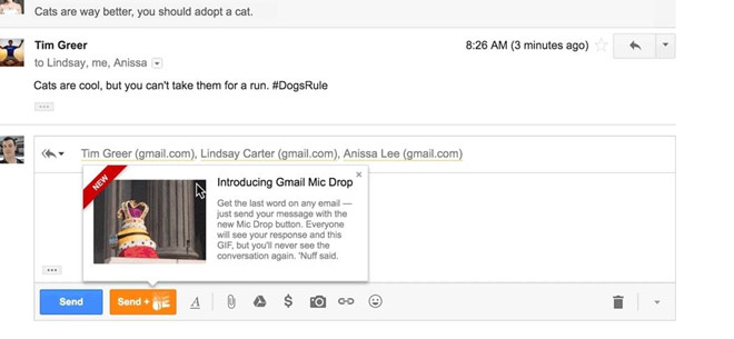 Rất nhiều người dùng Gmail đã mất việc khi vô tình gửi nhầm GIF mic drop vào những mail công việc của mình. Google đã xin lỗi và tắt tính năng ngay sau khi nhận được phản hồi, nhưng một vài người vẫn còn thấy Mic Drop vài lần sau đó.