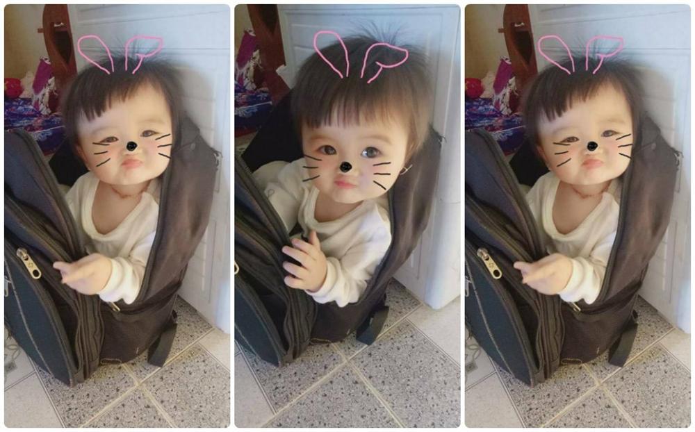 Cụ thể, em bé trong clip với gương mặt bầu bĩnh và đáng yêu ngồi lọt thỏm vào trong chiếc balo màu đen của bố. Em tỏ ra rất thích thú và vui vẻ với món đồ lạ lẫm này. Biểu cảm của em quá đỗi đáng yêu khiến người xem bị "đốn tim".