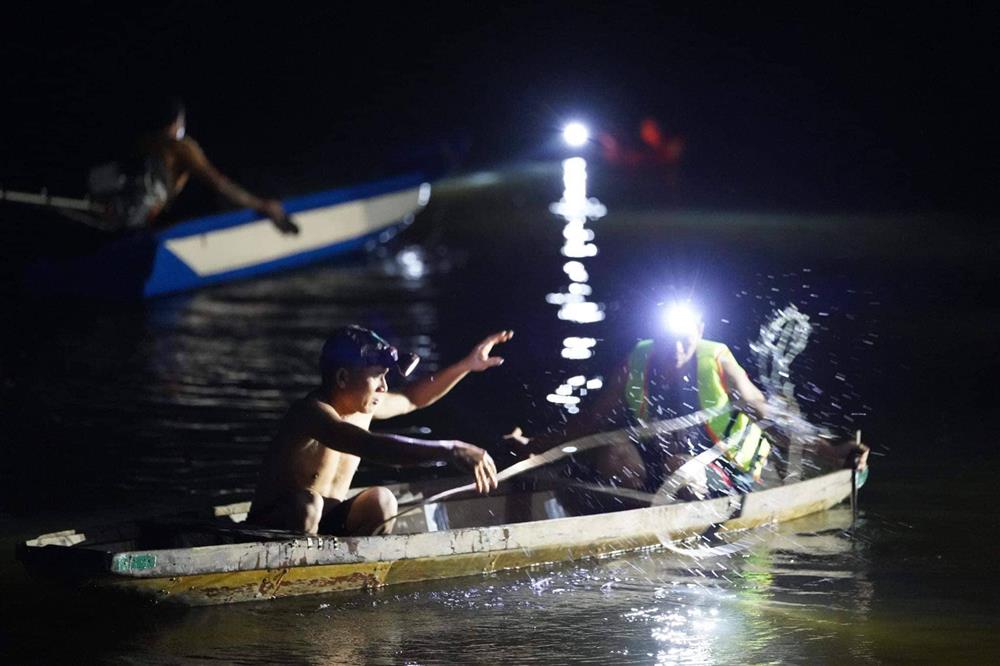 Tới 24h, các lực lượng vẫn tích cực tìm kiếm 2 học sinh mất tích.