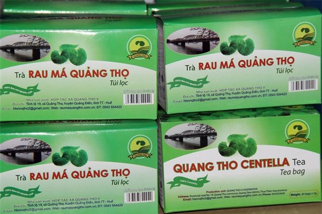 Với quy hoạch trên 40ha rau má hàng hóa, người dân xã Quảng Thọ (huyện Quảng Điền, Thừa Thiên - Huế) thu trên 16 tỷ đồng/năm, cao gấp nhiều lần so với trồng lúa. HTX sản xuất trà với thương hiệu Trà rau má Quảng Thọ gồm 2 sản phẩm chính là trà túi lọc và trà sao khô.