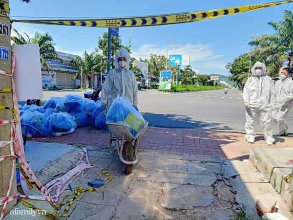 Những hình ảnh của những chiến sĩ khoác trên mình tấm áo bảo hộ, xách những túi đồ vào từng hộ dân ở thị trấn Long Hải, huyện Long Điền, Vũng Tàu đang thu hút sự chú ý đông đảo của cư dân mạng. Ai ai cũng phấn khởi khi nhận được những phần quà của "anh nuôi" bộ đội.