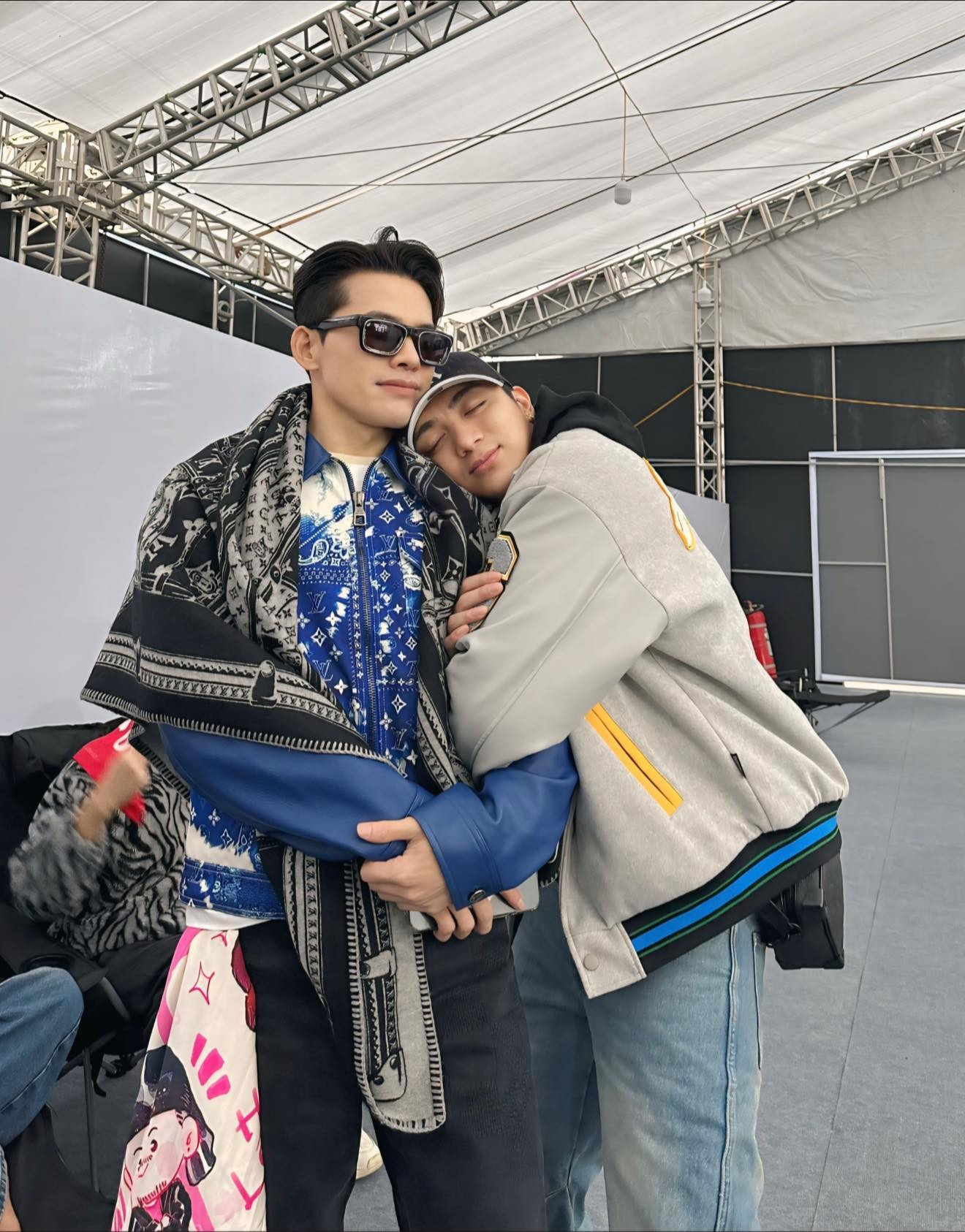 Ngoài những lúc chăm chỉ tổng duyệt, 32 anh tài không quên vui đùa khiến không khí "nóng hơn bao giờ hết". Trong ảnh Soobin Hoàng Sơn ôm chặt Quốc Thiên.
