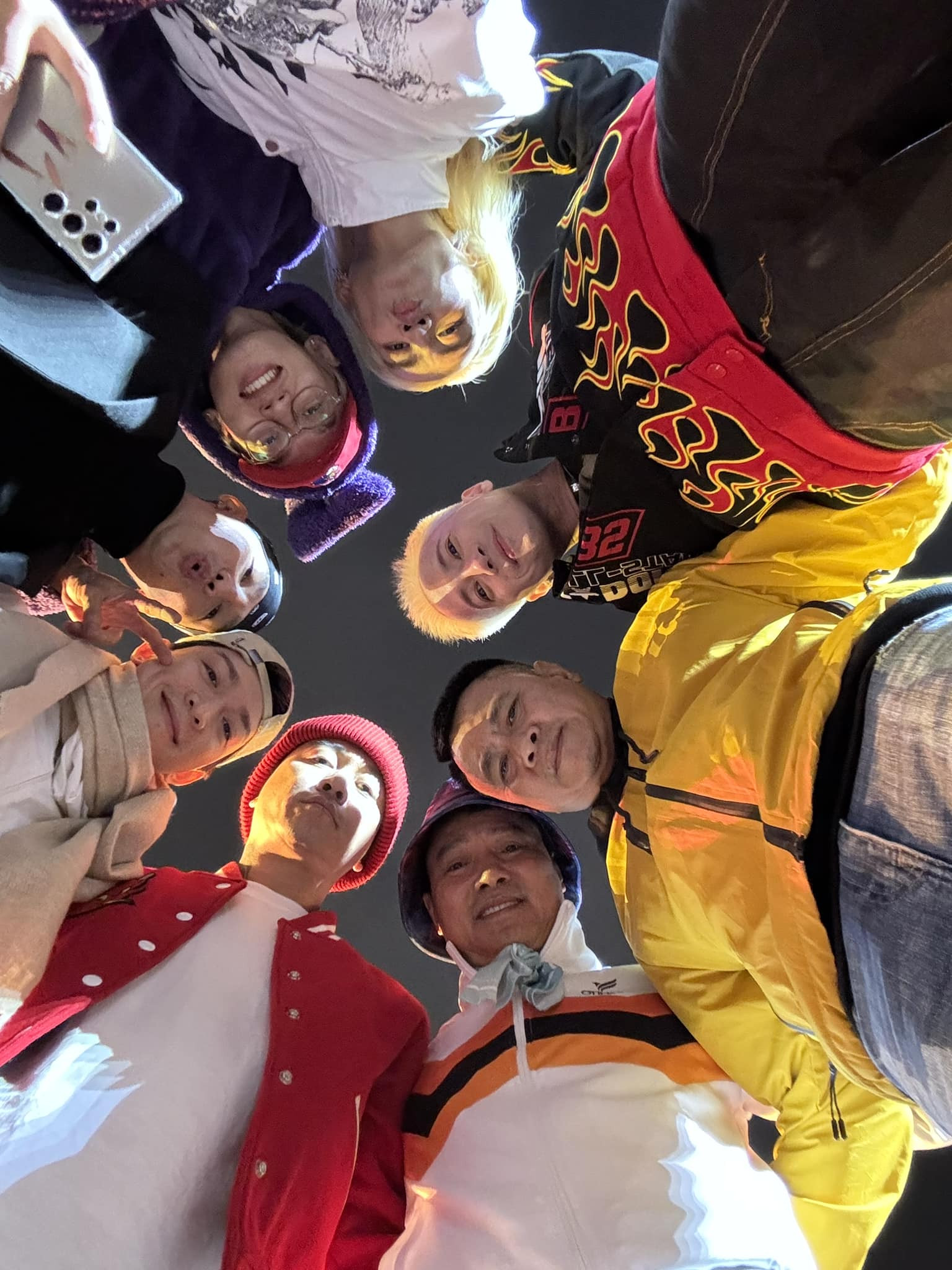 Các anh tài mặc đồ ấm áp cùng nhau check-in tại khu vực sân khấu. Tất cả đều tràn đầy năng lượng cho một đêm diễn bùng nổ.