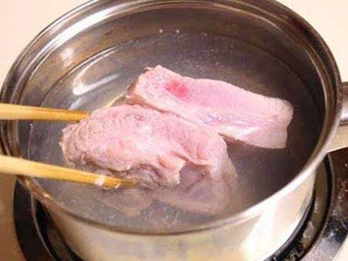 Theo GS Nguyễn Duy Thịnh, chần thịt qua nước sôi sẽ làm miếng thịt biến tính co lại khiến chất bẩn, chất độc hại không thoát được ra ngoài (Hình minh họa)
