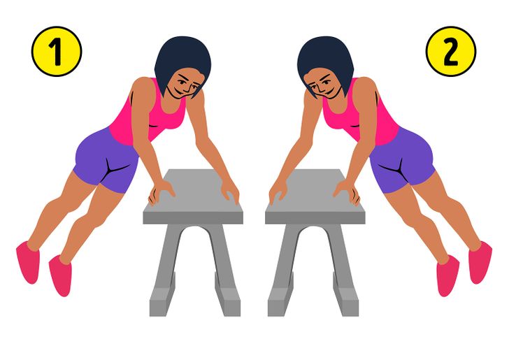 Với bài tập này, bạn có thể cần thiết bị như ghế tập tạ. Nhưng nếu bạn không có ở nhà, bạn có thể sử dụng một chiếc ghế bình thường. Nếu bạn định sử dụng chúng như một bài khởi động, bạn nên thực hiện lặp đi lặp lại và tập. Hãy thử thực hiện 3 hiệp 15 lần để giảm mỡ bụng.