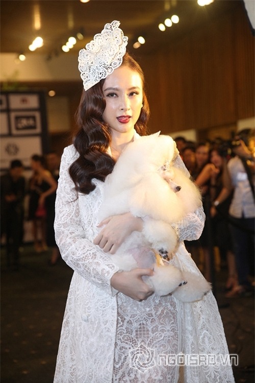 Tối ngày 12/12/2016, nữ diễn viên Angela Phương Trinh xuất hiện trên thảm đỏ show thời trang của