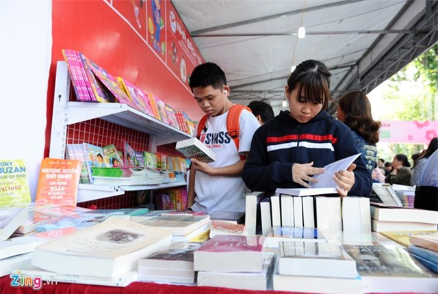 Em Phương, học sinh lớp 9 trường THCS Giảng Võ tranh ngủ những ngày được nghỉ đi chọn cho mình những cuốn sách phù hợp. Ngày trước đó, Phương đã tìm đến đây nhưng phố sách chưa khai mạc. |