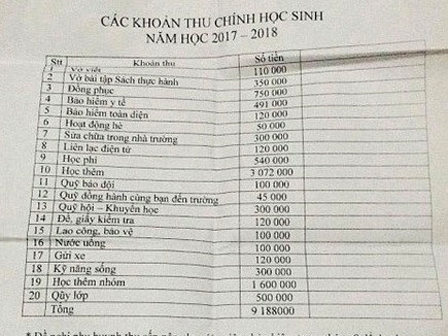 Các khoản thu này được thống nhất với phụ huynh trước khi thực hiện và khi thu phải cấp hóa đơn cho từng học sinh, thực hiện đầy đủ các chế độ quản lý tài chính, đồng thời giãn thời gian thực hiện thu, không tổ chức thu gộp nhiều khoản trong cùng một thời điểm và báo cáo mức thu đã thực hiện với Sở trước ngày 15/9.