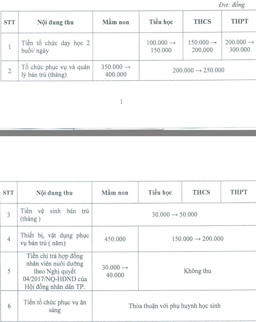 Sở GD- ĐT TP.HCM quy định, trên cơ sở khung và các nội dung đã quy định, các đơn vị căn cứ vào điều kiện cơ sở vật chất, nhu cầu của phụ huynh để xây dựng dự toán thu chi cho từng nội dung thu.