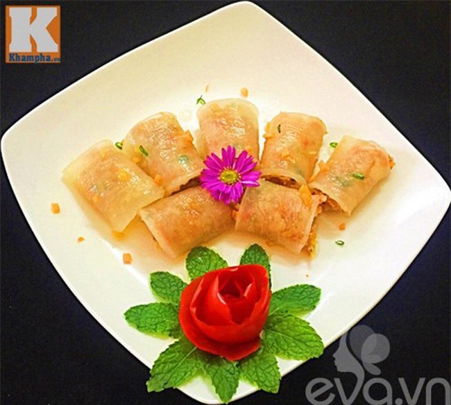 Trải miếng củ cải ra đĩa, cho ½ thìa nhân vào giữa rồi cuộn tròn lại, xếp lên đĩa.