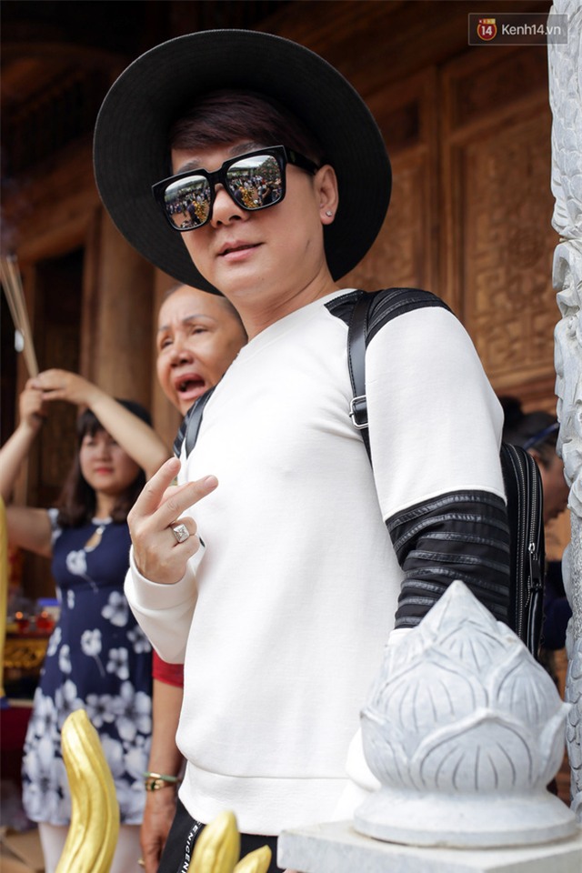 Nghệ sĩ Hoài Linh có mặt từ sớm, chia sẻ với mọi người đến tham quan đền Tổ