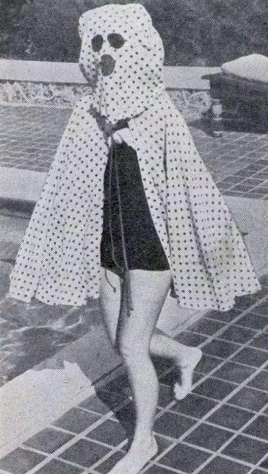 Vào khoảng những năm 40 của thế kỷ trước, phụ nữ trên thế giới có một kiểu chống nắng thậm chí còn "kín kẽ" hơn cả bây giờ. Họ thường sử dụng một chiếc áo choàng trùm kín cả đầu, phủ hết toàn thân và còn được đính kèm luôn cả kính râm cả bảo vệ mắt.