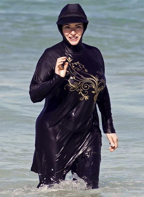 Phụ nữ Anh rất ưa chuộng kiểu trang phục chống nắng có tên gọi burkini. Bộ cánh này lấy ý tưởng từ trang phục của phụ nữ đạo Hồi, được làm từ thun lycra và nylon rất nhẹ, ôm sát cơ thể, trùm kín từ đầu tới mắt cá chân.