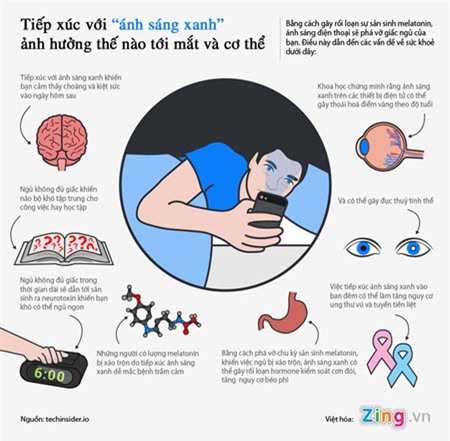 Tác hại của ánh sáng điện thoại đối với cơ thể con người. |