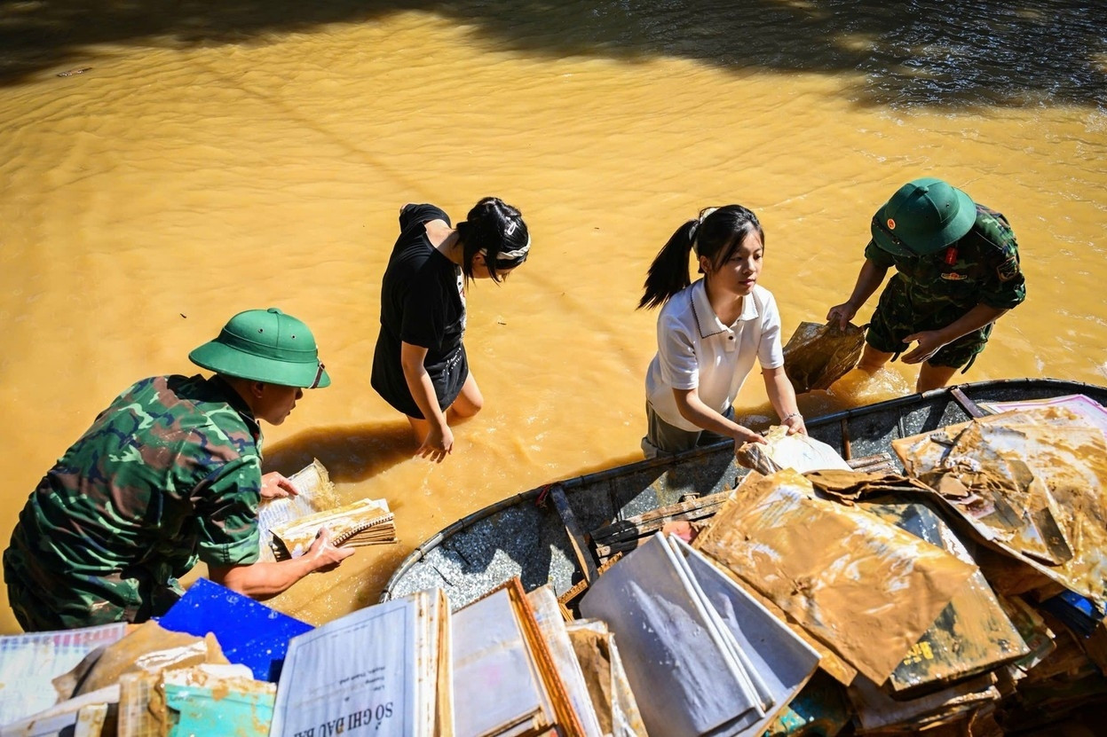 “Vấn đề khó khăn chủ yếu của các trường là thiếu nước máy để dọn bùn bên trong các phòng, lớp học. Tuy nhiên, đến nay, cơ bản các trường dọn xong hậu quả sau lũ; không có trường học nào báo phải nghỉ học ngày mai 13/10. Tinh thần tăng tốc khẩn trương, những trường không bị ngập cũng đến hỗ trợ trường bị ngập dọn dẹp. Cơ bản các trường sẽ tổ chức học trực tiếp, tuy nhiên, sẽ có cả phương án online cho những học sinh chưa thể đến trường”, ông Hùng nói.