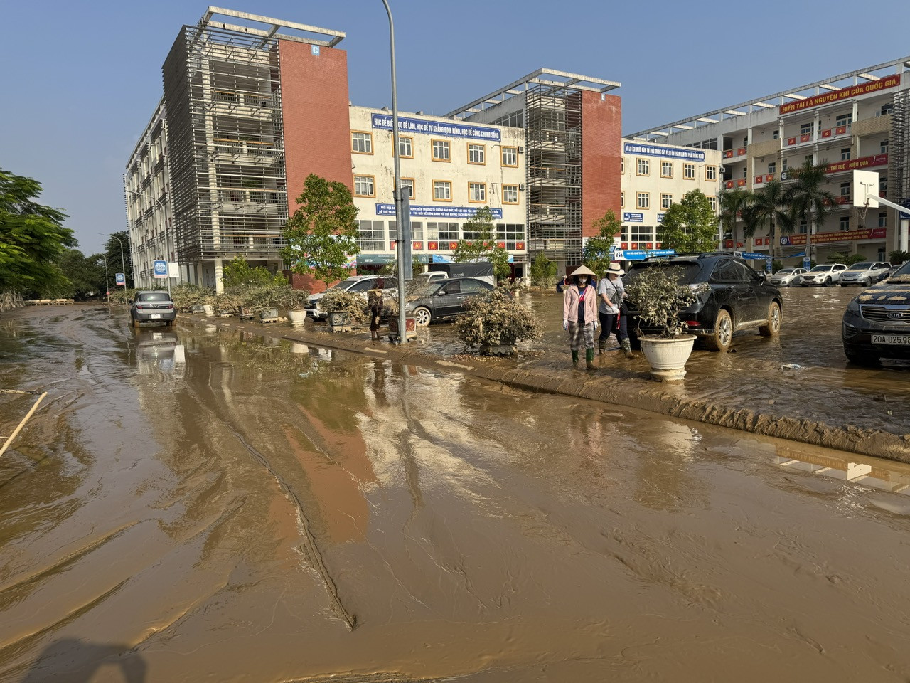 Sau khi nước rút, nhà trường dọn vệ sinh từ đó đến tối muộn ngày 12/10. Ông Hưng cho biết, 17h ngày 12/10, nhà trường vẫn tiếp tục dọn bùn ra khỏi trường. Ngoài nhân lực, trường đã phải thuê 3 máy gạt, 3 xe hút bùn, 1 xe chở đất để khắc phục hậu quả.