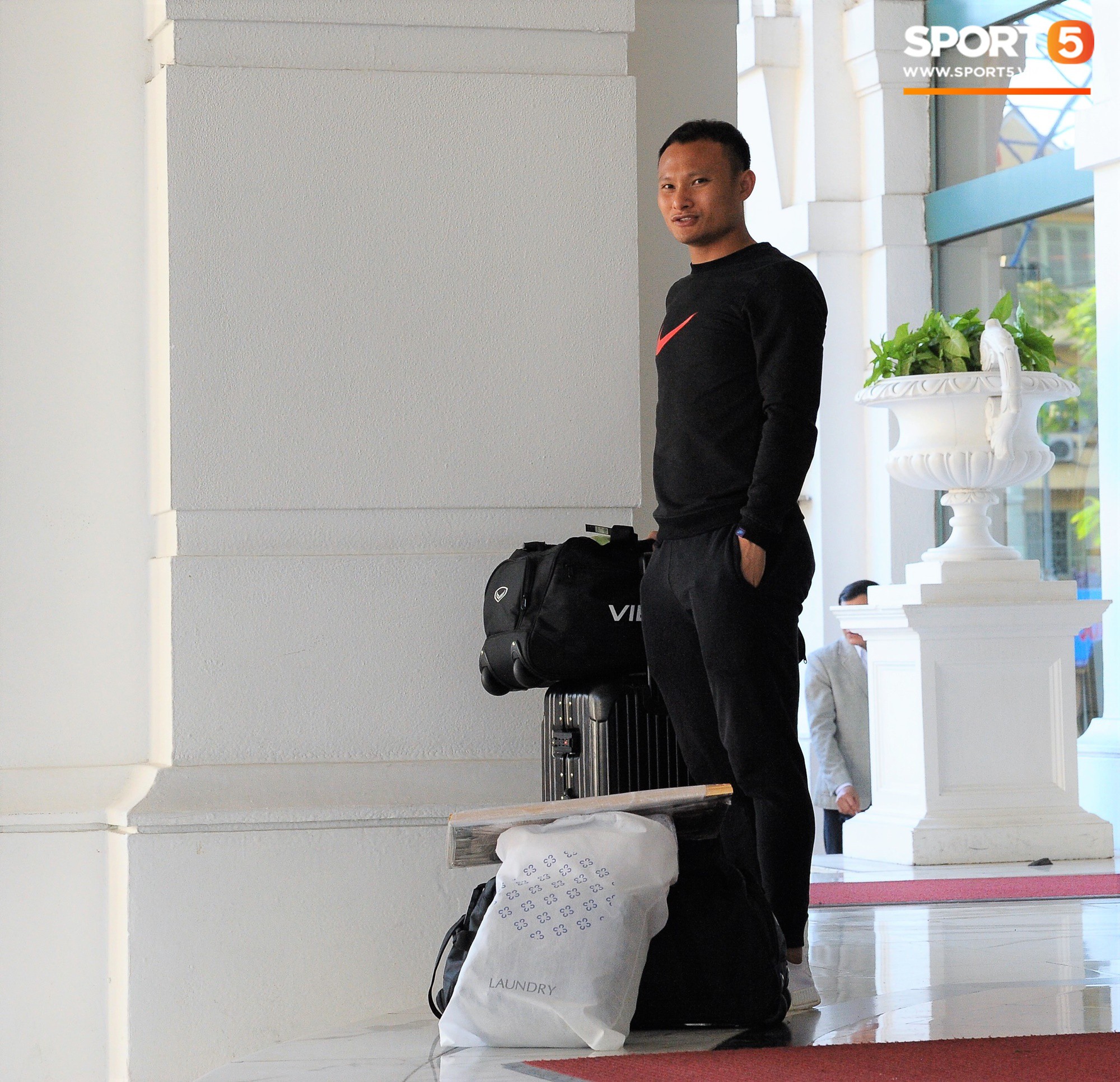 Hậu vệ Trọng Hoàng phải gửi bớt đồ về nhà cho nhẹ hành lý khi đi Qatar. Ảnh: Phạm Huyền.