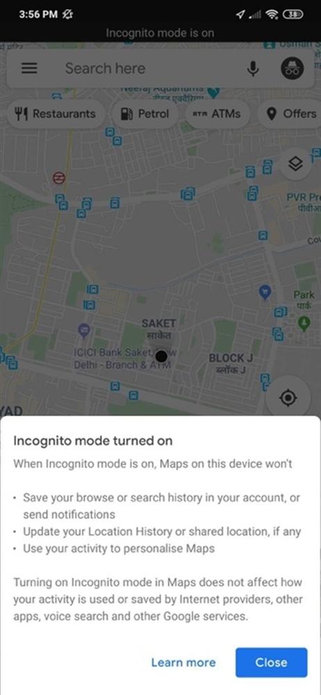 Tuy nhiên, đôi khi bạn không muốn lưu lại dấu vết về những nơi mình đã từng đến. Trước đây nếu muốn như vậy, bạn phải tắt hoàn toàn lịch sử vị trí. Mới đây, Google đã giới thiệu tính năng Incognito mode (Chế độ ẩn danh) dành cho ứng dụng Google Maps cho Android. Tính năng này cho phép người dùng sử dụng Google Maps hoàn toàn riêng tư trong một khoảng thời gian nhất định.