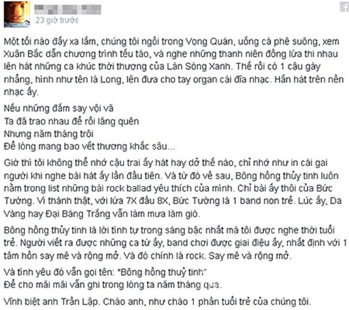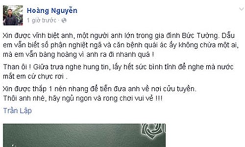 Trần Lập: Vĩnh biệt anh - điều đẹp đẽ nhất! - Trần Tuấn Hùng thành viên nhóm Bức tường chào thủ lĩnh |