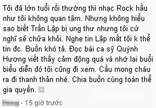 Chúng tôi cũng chỉ nói và dường như chưa thật dám tin rằng hình tượng Trần Lập và những người anh em nghệ sỹ tuyệt vời đêm nhạc đó có thể làm thay đổi điều gì lớn lao. Nhưng đó là lý tưởng, đó là tuổi trẻ, đó là điều đẹp nhất mà Trần Lập trong cơn bạo bệnh vẫn mong gắng gượng để chia sẻ, để thắp một tia hy vọng.