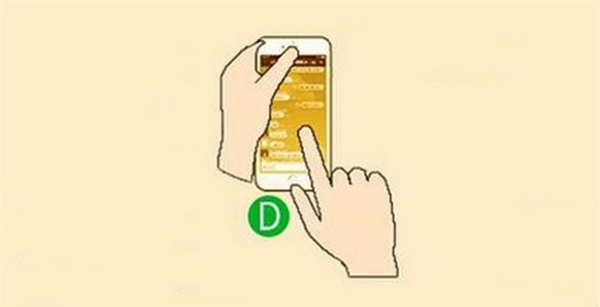 Kiểu D: Dùng một tay đỡ điện thoại và điều khiển bằng ngón trỏ của tay kia