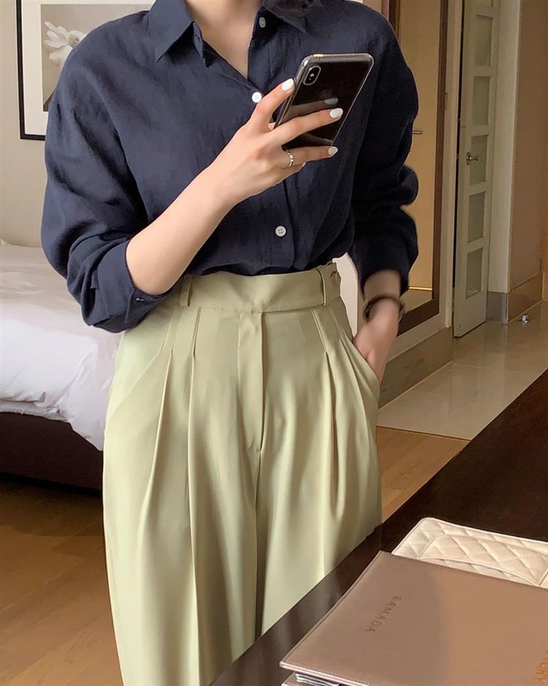Ưu điểm của áo sơ mi xanh than là cực kỳ dễ mặc, giúp làn da của chị em trông tươi sáng, hồng hào hơn chứ không bị xỉn màu. Tông màu xanh than luôn được đánh giá cao ở sự tinh tế, xịn mịn, nên càng hợp với nàng công sở. Khi diện áo xanh than, chị em nên kết hợp với những mẫu quần dài/chân váy mang tông màu sáng như: trắng, be, xanh denim..., vẻ ngoài sẽ có được sự trẻ trung.