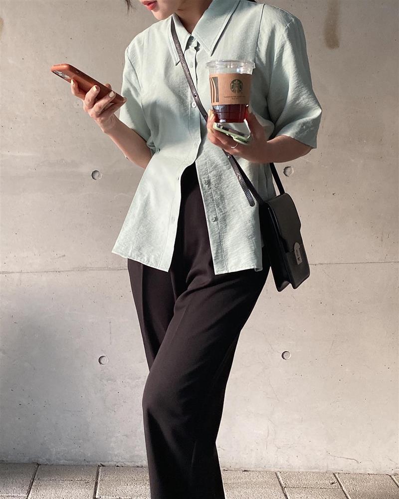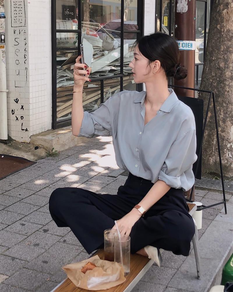 Áo sơ mi màu xanh xám là ứng cử viên rất sáng giá cho tủ đồ. Kiểu áo sơ mi này đủ sáng sủa, trẻ trung, nhưng vẫn có được sự trang nhã. Vì vậy, khi diện áo sơ mi xanh xám, độ sang xịn mịn của set trang phục cũng sẽ được nâng cấp. Áo sơ mi màu xanh xám không khó để diện. Tuy nhiên, để không lúng lúng khi mix đồ, chị em hãy ghim một vài công thức như là: sơ mi xanh xám + quần âu đen, sơ mi xanh xám + quần âu trắng hoặc sơ mi xanh xám + chân váy suông...