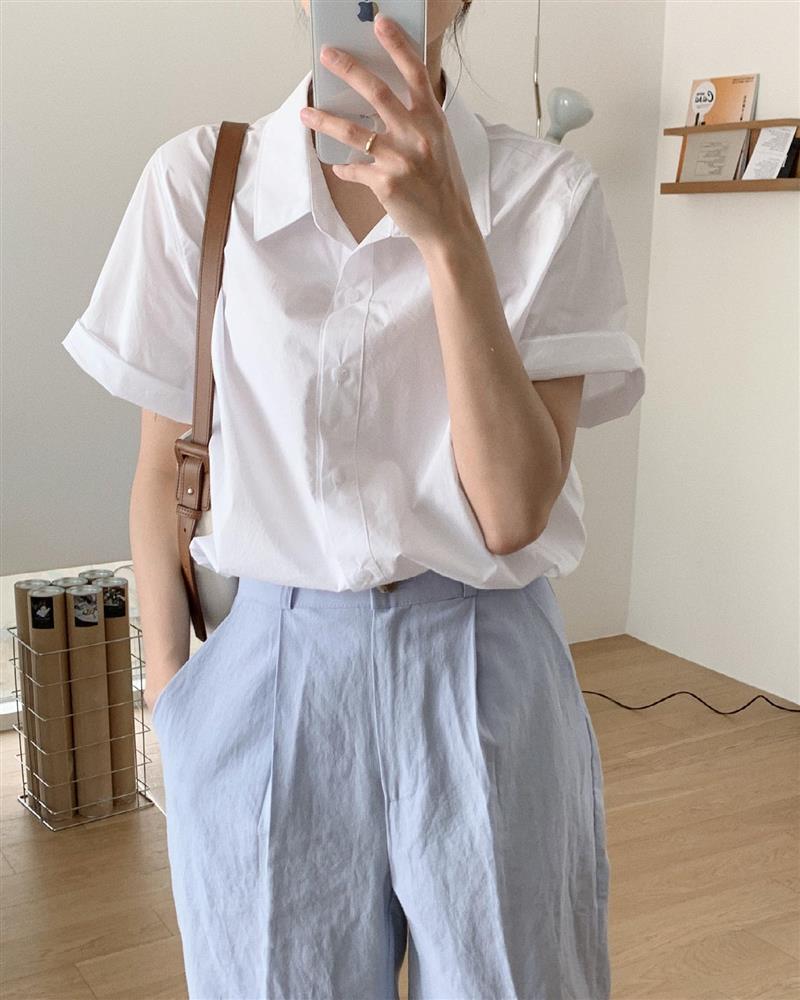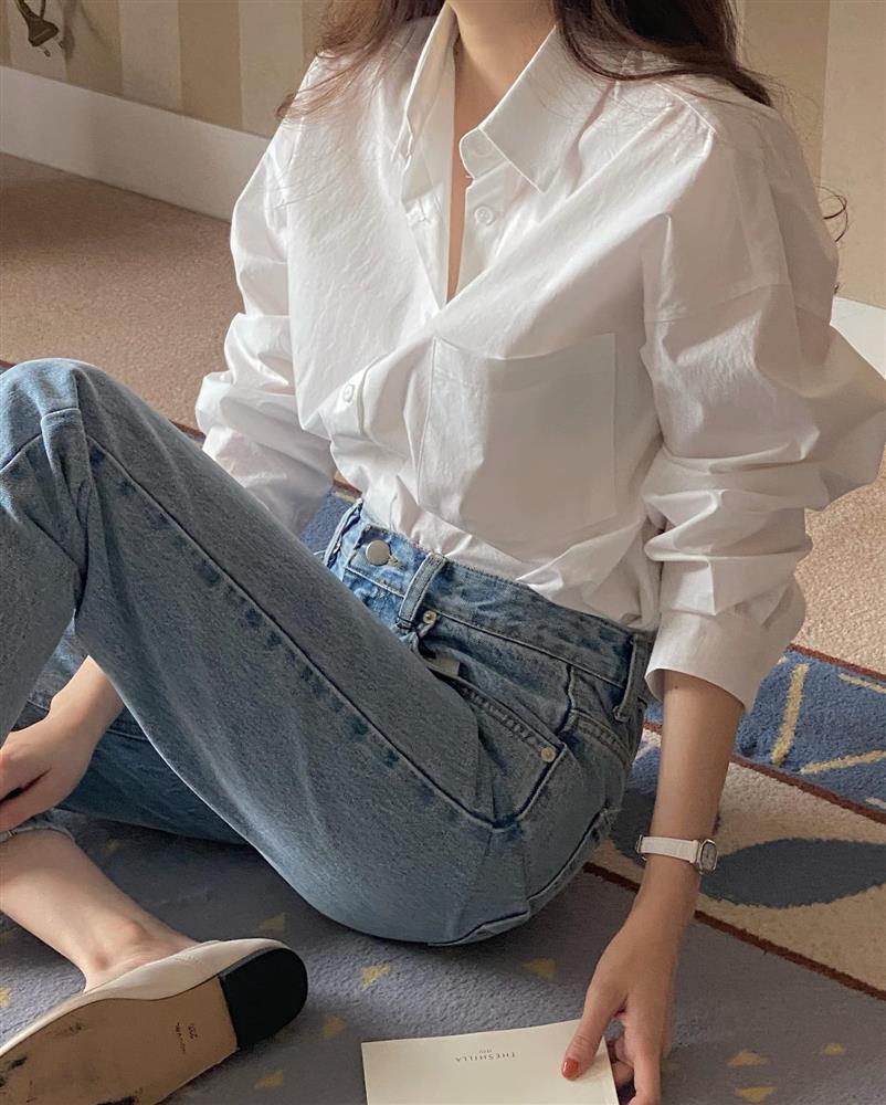 Dù tủ đồ của chị em nhiều màu sắc đến đâu, đừng bỏ qua lựa chọn cơ bản nhất là áo sơ mi trắng. Sơ mi trắng trẻ trung và thanh lịch, không kén da. Đây cũng là kiểu áo sơ mi mà chị em chỉ cần kết hợp theo cách đơn giản nhất, chẳng hạn như mix cùng quần jeans xanh, quần âu ống đứng hay chân váy dài, thì vẫn có được outfit chuẩn đẹp và sành điệu.